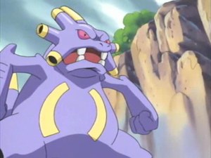 火箭隊三人組看中了爆音怪巨大的嗓音,認為將牠獻給老大當作「定時鬧鐘」定能獲得晉升,於是利用特製的捕獲裝置襲擊爆音怪。凱伊為了保護受困的爆音怪,奮不顧身地擋在裝置前受了傷。看到訓練家如此捨命守護自己,爆音怪終於被感動,回想起了兩人的深厚情誼,從而恢復了冷靜。最終,在小智的皮卡丘與森林蜥蜴的協助下,爆音怪使出強大的攻擊將火箭隊擊飛。