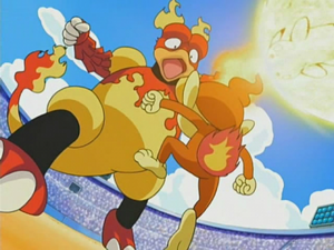 對戰中,鑽角犀獸的特性「避雷針」完全封鎖了皮卡丘的電屬性招式,讓小智陷於苦戰。真司完全不考慮與小智配合,甚至讓小火焰猴在危險的情況下硬接對手的火焰攻擊,企圖以此提升小火焰猴的火屬性招式威力。關鍵時刻,小智運用華麗大賽中學到的技巧,命令皮卡丘以「鐵尾」切開鑽角犀獸的「衝浪」,並成功掩護了小火焰猴。最終兩人在缺乏默契的情況下,僅憑各自寶可夢的實力擊敗對手,晉級第二輪。然而,真司對小火焰猴的冷酷對待與對小智的冷嘲熱諷,也為接下來的比賽埋下了更深的矛盾伏筆。