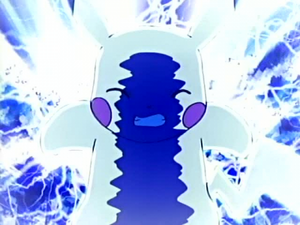 小剛分析指出,電擊怪並非生性兇殘,而是因為體內積蓄了過多雷電能量,導致身體不堪負荷且情緒失控,情況與皮卡丘過去曾發生的電力過剩症狀極為相似。為了拯救電擊怪,小智決定讓皮卡丘先吸收山頂的落雷,使電力強度與電擊怪對等,再透過對戰引導電擊怪釋放體內多餘的電力。皮卡丘不顧危險,成功承接了落雷,準備與電擊怪展開一場放電對決。