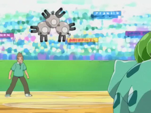 小智最後的希望交託給了經驗豐富的妙蛙種子。妙蛙種子展現強大的應變能力,先是以「寄生種子」消耗三合一磁怪的體力,並以「藤鞭」識破其影子分身,成功扳回一城。最終戰由妙蛙種子對決大竺葵。雙方同為草系寶可夢,展開了力量與意志的對碰。大竺葵擁有體型與力量優勢,但妙蛙種子利用靈活的藤鞭使出「過肩摔」反制。比賽末段,雙方捨棄閃避,站在場中以藤鞭正面互抽,這是一場關乎草系自尊的硬戰。最後,兩者同時釋放最強大的「陽光烈焰」,在一陣劇烈爆炸後雙雙倒地無法戰鬥。