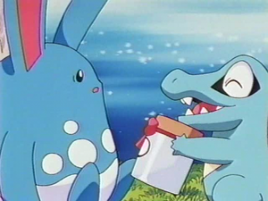 小智、小霞與小剛一行人在前往滿金市的旅途中,來到一處景色優美的湖邊休息。當小智釋放出小鋸鱷與水系寶可夢們一起戲水時,活潑的小鋸鱷被一陣美妙的歌聲吸引。原來是進化形寶可夢瑪力露麗正在湖邊歌唱,小鋸鱷對瑪力露麗一見鍾情,隨即展開了熱烈的追求,卻不幸被瑪力露麗用水槍冷淡地拒絕。