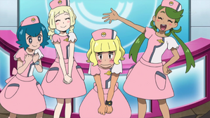 當眾人抵達寶可夢中心準備開始體驗時,發現喬伊小姐因感冒病倒了。為了報答平日的照顧,小智與朋友們決定代班營運寶可夢中心。在洛托姆圖鑑的協助下,眾人換上制服——其中小智因為找不到合適的男用制服,竟被瑪奧等人「改造」成了可愛的喬伊造型。大家各司其職:莉莉艾與瑪奧負責櫃檯接待與照護,水蓮與馬瑪內負責整理客房,而小智與卡奇則負責外送藥品以及幫大型寶可夢進行護理。外送過程中,小智意外遇到了喬裝成甜甜圈店員的小次郎,並為他的好壞星送達了保濕霜。