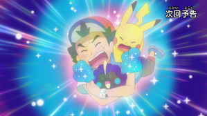 火箭隊企圖以卑鄙的手段奪取小星雲,武藏派出謎擬Q與皮卡丘對抗,而小次郎與喵喵則趁隙抓住了小星雲。然而,愛玩的小星雲在被抓捕的過程中不斷發動瞬間移動,將火箭隊成員耍得團團轉。最後小星雲平安回到小智懷中並因疲勞再次入睡。當卡奇、莉莉艾等同學趕來救援時,睡醒的小星雲再次發動能力,原本大家想著要回寶可夢學校,結果卻全員被傳送到學校建築的最頂端,無法下來。這場因為瞬間移動引發的大恐慌,就在大家的驚呼與無奈的笑聲中結束。