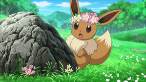 在花田與起舞的伊布相遇