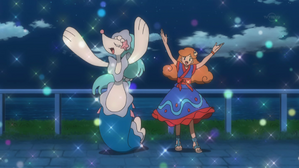 在海邊,水蓮抓緊最後的機會跟隨師傅伊亞進行特訓。雖然伊亞的訓練看起來只是在海中嬉戲與唱歌,但其核心是讓水蓮與球球海獅感受大海的律動與節奏。伊亞展示了西獅海壬專用的Z招式「海神莊嚴交響樂」,那震撼且美麗的表演激發了水蓮的鬥志。為了向即將啟程的師傅展現最後的成長,水蓮與球球海獅在告別聚會上全力投入,球球海獅在歌聲與情感的帶動下,成功進化成了花漾海獅。