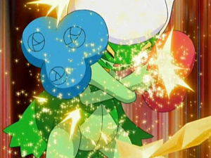 菜種最後派出了王牌羅絲雷朵。羅絲雷朵展現出強大的實力,先以草結點絆倒小智的草苗龜,隨即發射受天氣影響轉變為火屬性的氣象球,僅一擊就將體力耗盡的草苗龜擊倒。小智最後的希望寄託在長尾怪手身上。長尾怪手雖然動作靈活,卻被羅絲雷朵的閃光奪走了視線。在陷入黑暗的危機中,小智冷靜地指示長尾怪手專注於聲音。長尾怪手成功聽聲辨位,利用真氣拳回擊了氣象球,並將高速星星與真氣拳組合成華麗的戰法,最終成功擊敗羅絲雷朵。