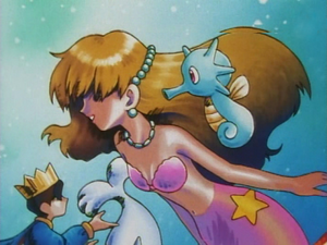 在前往常青市的旅途中,小霞發現她的墨海馬因為長期缺乏運動而顯得無精打采。小剛建議讓牠在寬廣的地方盡情游泳,於是眾人決定順路前往小霞的老家——華藍道館。抵達道館後,小智一行人看到道館正貼著「水中芭蕾舞劇」的大型海報。小霞原本只是想讓墨海馬休息,沒想到她的三位姐姐櫻花、菖蒲與牡丹,因為道館表演生意冷淡,竟然強行要求剛進門的小霞擔任新劇目《人魚公主的假日》的主角人魚公主。