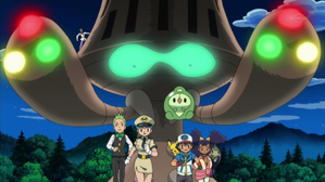 克里夫向大家解釋,這座山上有兩個凍原熊群體,分別居住在山頂與山麓。這隻獲救的噴嚏熊屬於山頂群體,但剛才襲擊他們的則是山麓群體。雖然雙方原本並無敵意,但山麓的凍原熊不知為何變得極度暴躁。為了將噴嚏熊送回山頂的家,克里夫建議繞道而行,但在前進過程中,眾人再次遭到山麓凍原熊的伏擊。混亂中,皮卡丘、水水獺、暖暖豬、牙牙、噴嚏熊與喵喵與小智等人分散,掉進了森林深處。