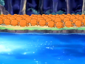 眾人意識到,阿勃梭魯出現在村莊附近,是為了警告地下水脈即將潰堤引發大洪水。果然,強烈的地鳴隨之而來,巨大的水壓即將沖毀山壁危害村莊。阿勃梭魯試圖利用「破壞光線」擊落大岩石來堵住水源,小智與夥伴們也立刻派出所有寶可夢——包括森林蜥蜴、赫拉克羅斯、大王燕、向尾喵等,合力使出各種絕招推動巨石。最終,眾人與寶可夢齊心協力,成功將水源封住,拯救了里亞多村。