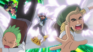 被震飛的皮卡丘被一名叫做尼克的男孩發現。尼克由於沒見過皮卡丘,一度誤以為牠是傳說中寶可夢「捷克羅姆」的進化前形態。尼克的朋友葛倫和尚恩出現後,指出這只是關都地區的皮卡丘。尼克平時總是被性格強勢的葛倫壓制,為了面子,他謊稱這隻皮卡丘是自己爸爸的寶可夢,並答應要與葛倫進行寶可夢對戰。