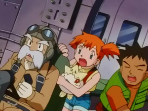 咕咕號在航行途中遭遇了惡劣的天氣,海面上掀起陣陣暴風雨。此時,同樣在空中受困的火箭隊出現在眾人面前,並向小智求救。隼先生秉持著「在天空飛行的都是夥伴」的信念,決定不計前嫌地救起火箭隊。然而,由於咕咕號機齡已高,飛機的兩個引擎在強風中開始鬆脫。小智緊急派出妙蛙種子與月桂葉,利用藤鞭固定住搖搖欲墜的引擎,小霞也派出蚊香君與海星星使用水槍調整機首角度,在眾人合力之下,飛機才勉強維持飛行。