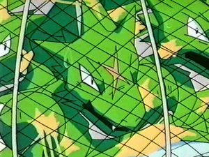 與此同時,火箭隊的武藏、小次郎與喵喵不幸落入飛天螳螂族群的領域。武藏視為生命的柔順長髮意外被飛天螳螂割斷,讓她憤怒爆發。火箭隊決定實施報復計畫,利用黏膠飛彈大規模捕捉整個飛天螳螂族群,企圖將牠們收編為武裝部隊。受傷的飛天螳螂感應到族群遭受威脅,不顧傷勢尚未痊癒,執意衝出寶可夢中心前去救援。